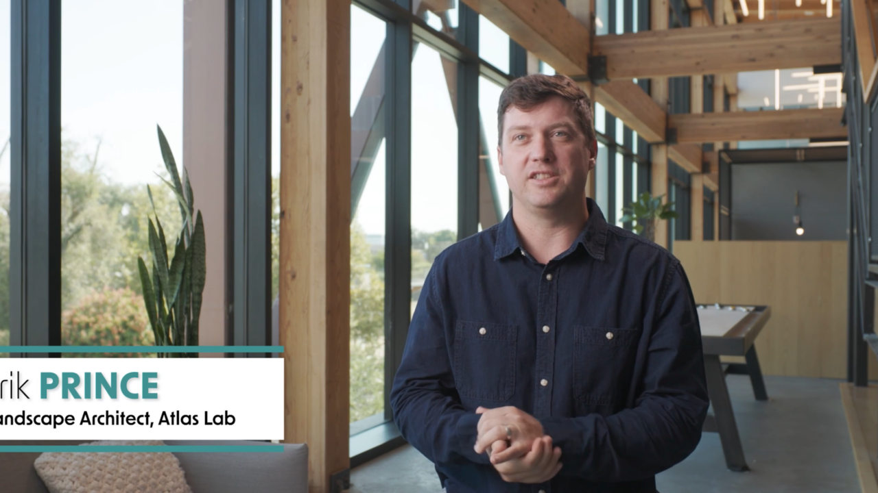 Principal Erik Prince, RLA shares his insights on the design process for repurposing the exisitng trees for the Aggie Square Innovation District to curate public gathering spaces.