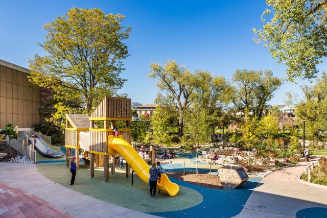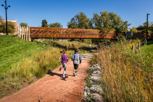 Extensive community engagement, including direct collaboration with local school children, shaped the park’s identity and features. This process led to the inclusion of beloved elements such as the Tree House, interactive water play zones, and a signature pedestrian bridge—each contributing to a rich, place-based experience that reflects the community’s values and imagination. Together, these design moves reinforce the park’s role as a vital civic and ecological asset—a place where nature, culture, and community converge in the heart of Boulder.