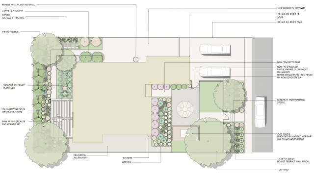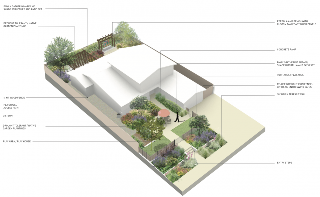 Landscapes have the ability to heal. The team at Atlas Lab was devastated to learn about the horrible tragedy and killing of Stephon Clark. When asked by the local community to transform the Clark-Thompson home, we poured our love and energy into healing the home. The grandparents of Stephon, Mr. and Mrs. Thompson physically and emotionally could not enter their backyard, where Stephon was killed. In response, Atlas devoted over 100 volunteer hours, working with Habitat for Humanity and the Rose Family Creative Empowerment Center/Meadowview Black Child Legacy Campaign to transform the front and backyard with brand new landscape treatment that include: accessible paths/ramps, drought tolerant plantings, family patio, veggie gardens and play area for the grandkids. Atlas repurposed existing site materials, including brick walls, wrought iron fencing and siding to create landscape terraces and centralized gathering space for family.