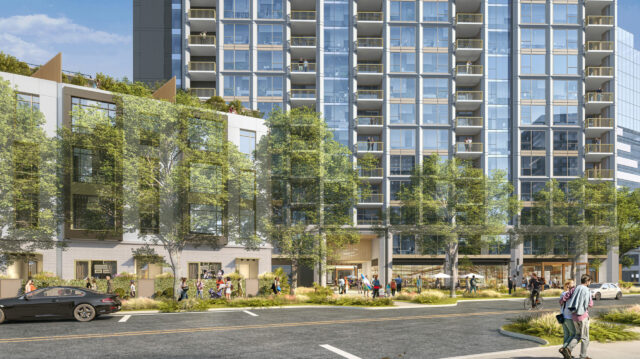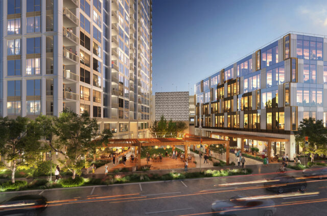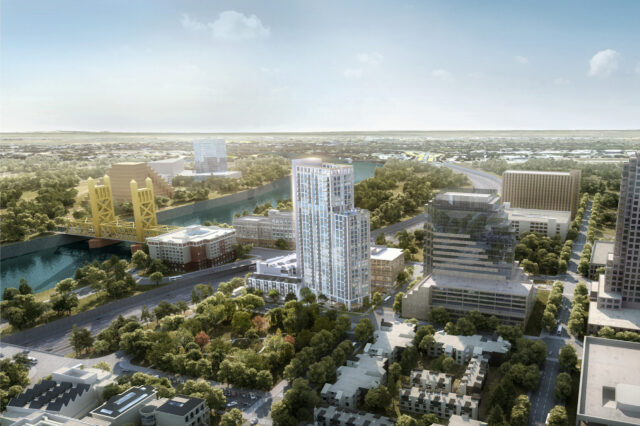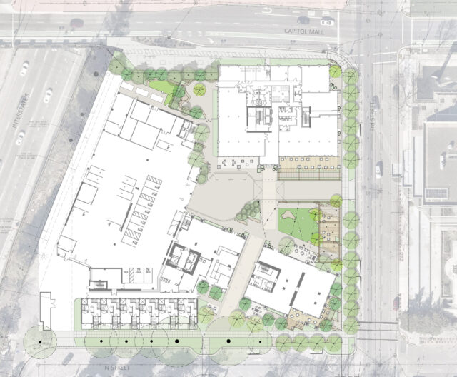 This mixed-use project proposed a dynamic new community for residents, tenants, and visitors in the heart of the city. The design breaks down the scale of the project by weaving the Crocker Park into its own fabric with a series of landscaped outdoor spaces. A pedestrian paseo passes through the tower, physically and visually connecting the park to the site’s own central courtyard. Abundant outdoor seating and dining terraces will extend the limits of the park’s influence to create additional opportunities to enjoy the Sacramento weather. For residents and office tenants, multiple upper level balconies, rooftop gardens and amenity spaces reinforce connections to the park on a vertical plane. On N street, a series of townhomes create an intimately scaled tree-lined streetfront promoting pedestrian interaction in a vibrant setting – a literal community in the park.