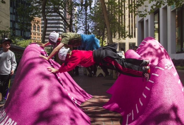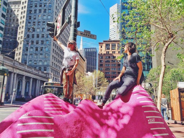 Located along the Embarcadero and Fremont corridors, Peak Experience is a visionary public realm concept that reimagines the Market Street sidewalk zone as a dynamic, community-driven corridor of play, learning, and discovery. Building upon the existing recreational assets of San Francisco’s waterfront, the project introduces a soft, flexible streetscape typology that transforms static urban elements into interactive, place-based experiences. Responding to the limited visual access to San Francisco’s iconic landscape from this stretch of the city—and the often rigid character of urban infrastructure—Peak Experience repositions the sidewalk as a malleable platform for educational and social engagement. The design incorporates subtle topographic shifts, tactile materials, and interpretive elements that reference San Francisco’s diverse geography, encouraging users to explore and connect with the city’s natural systems in an urban context. By augmenting the traditional sidewalk with moments of elevation, play, and gathering, Peak Experience establishes a stronger identity for Market Street, creating an active edge that celebrates local character and invites continuous community interaction.