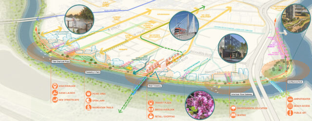 This effort represents a once-in-a-generation opportunity to reimagine Sacramento as a great waterfront city—reconnecting the capital with its rivers, enriching nearby communities, supporting sustainable growth, and creating safer, cooler, and more connected neighborhoods at the confluence of the Sacramento and American Rivers.