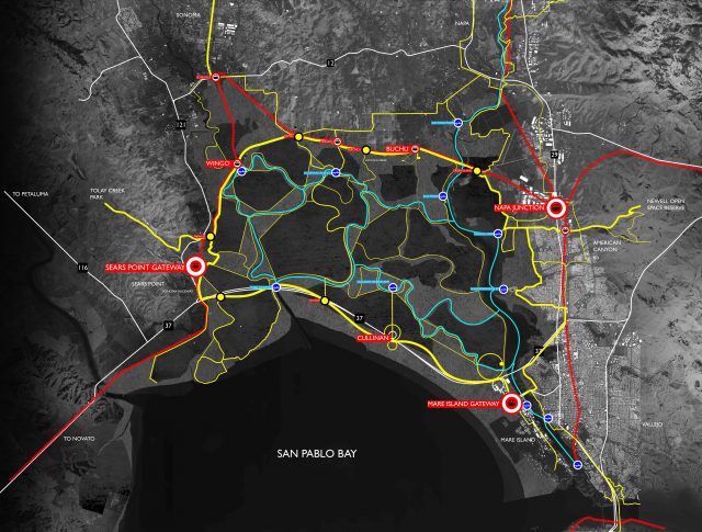 •MOBILITY – Create long-term, resilient opportunities to connect across the San Pablo Baylands with discrete inter-modal connections to adjacent communities.