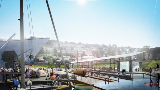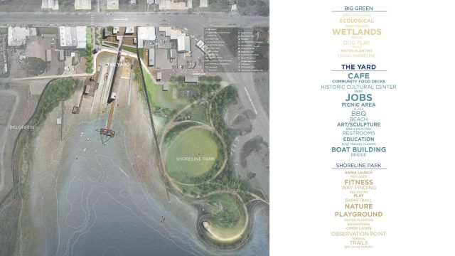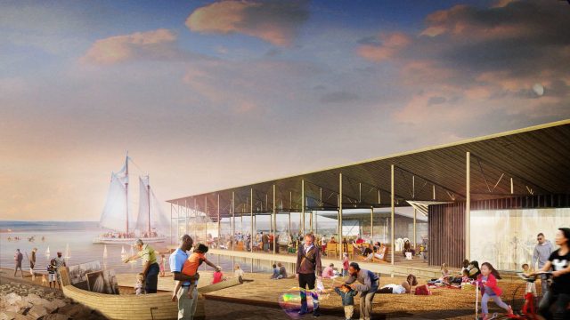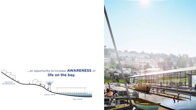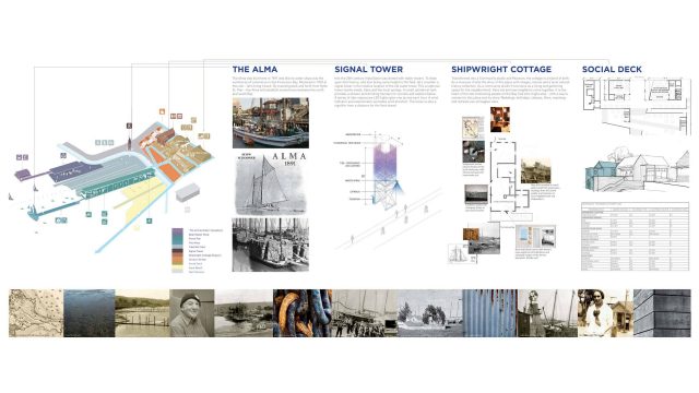 This proposal celebrates a landscape through time by unraveling both its natural and human-made history while also celebrating a communal future. When entering the yard one feels a sense of energy, action and connection—a hub for food, boat making, sailing and cultural reflection. It is a meeting ground for neighbors, many of whom have spent their life here as well as the many newcomers and travelers passing through.